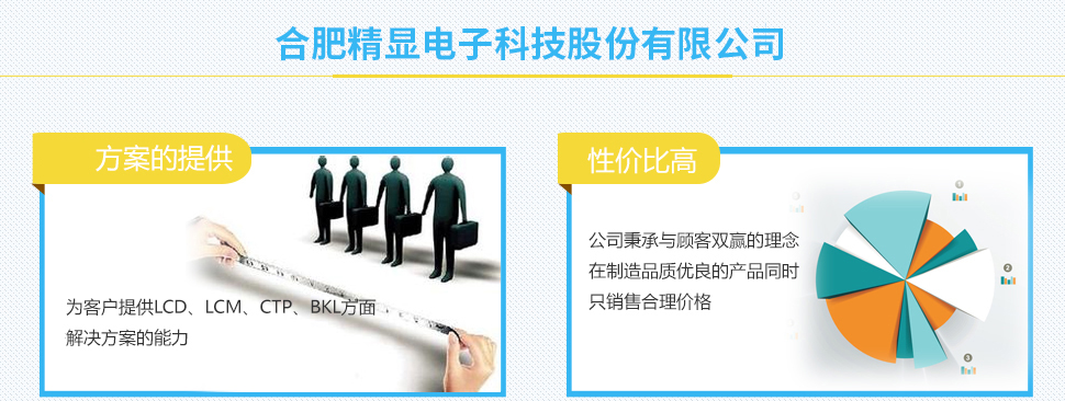 ?合肥精顯電子科技股份有限公司成立于2012年,由液晶行業(yè)知名企業(yè)廈門(mén)精顯電子有限公司投資建設(shè),是一家研發(fā)、生產(chǎn)、銷(xiāo)售高品質(zhì)液晶屏(LCD)、液晶顯示模塊(LCM)、背光(LED)、電容式觸摸屏(CTP)等節(jié)能環(huán)保產(chǎn)品并能為顧客提供解決方案的高新科技企業(yè)。 ?公司占地55畝,擁有建筑面積超過(guò)20000平米和潔凈廠(chǎng)房5400平米。 ?公司擁有一個(gè)超過(guò)15年以上LCD行業(yè)運(yùn)營(yíng)制造經(jīng)驗(yàn)的團(tuán)隊(duì)。 ?公司獲得研發(fā)專(zhuān)利20余項(xiàng)。 ?公司通過(guò)C-TPAT認(rèn)證,ISO9001:2008認(rèn)證,產(chǎn)品通過(guò)了ROHS、REACH。 ?我們產(chǎn)品廣泛應(yīng)用于智能儀表(水表,電表,氣表)、家電、儀器儀表、計(jì)量器械、文教 器具、UPS電源、智能手機(jī)機(jī)、平板電腦等電子產(chǎn)品的顯示和控制。目前我們已樹(shù)立了良好的品牌形象,并與眾多公司(如GE, Ja...更多>